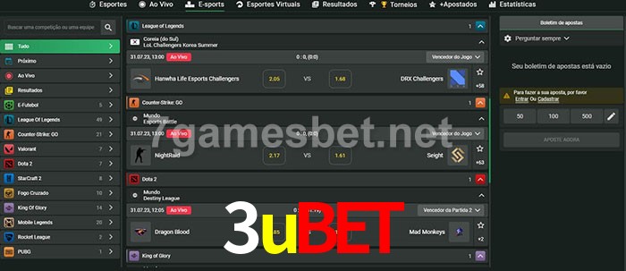 O 3ubet oferece uma grande seleção de opções de apostas em e-sports com probabilidades competitivas